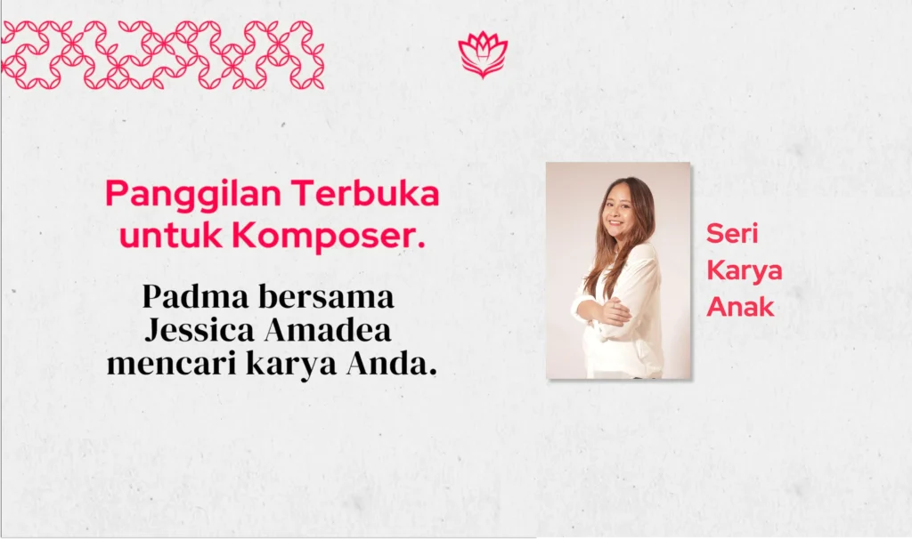 Padma Music Publishing berkolaborasi dengan Jessica Amadea sebagai kurator eksternal untuk meluncurkan sebuah seri terbitan khusus: Karya Paduan Suara Anak. Kami mengajak para komposer and arranger paduan suara anak untuk ikut bergabung dalam seri terbitan ini! Berikut ini adalah ketentuan pengumpulan karya: